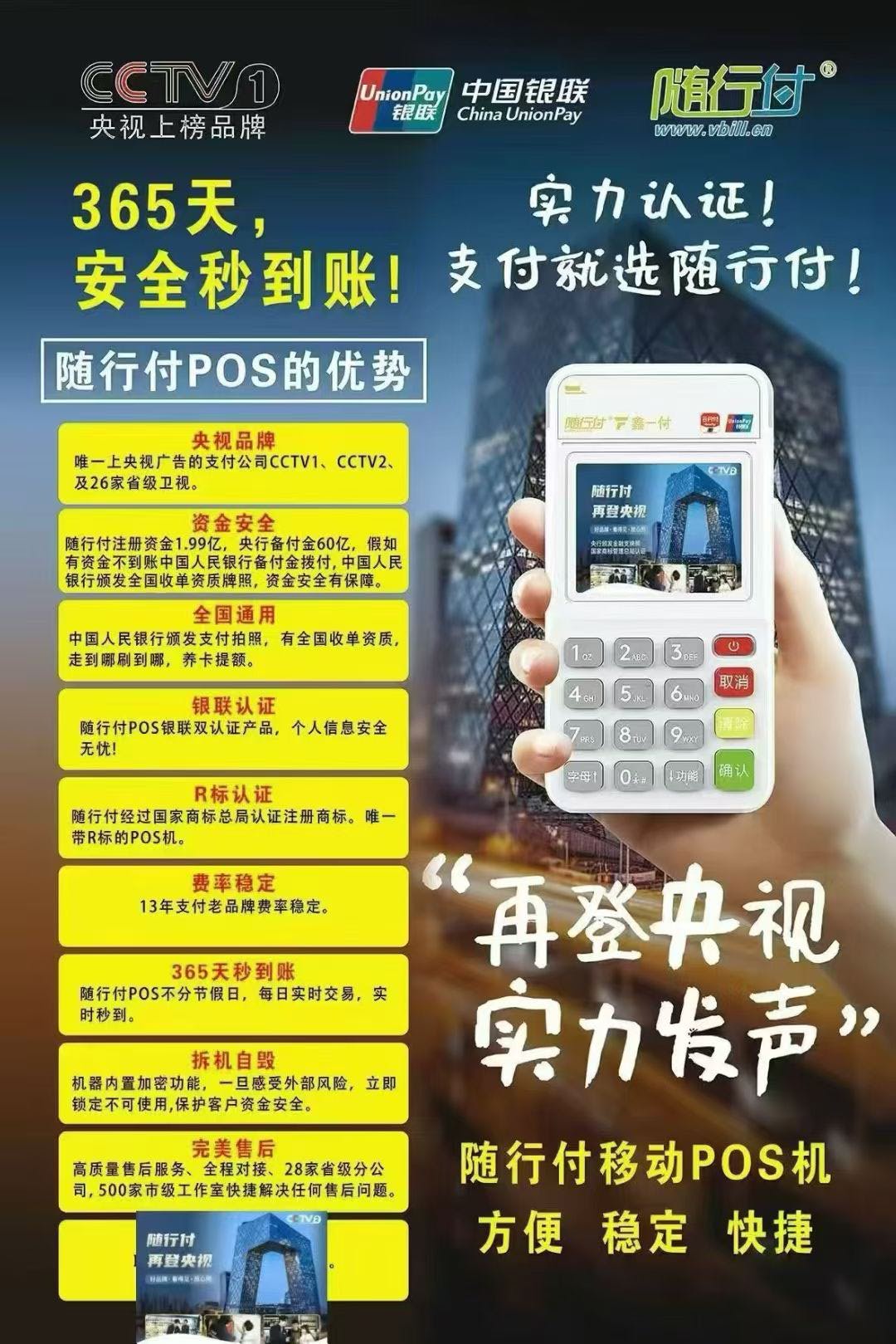 👉免费办理银联正规POS机,费率稳定,资金安全,刷卡秒到❗