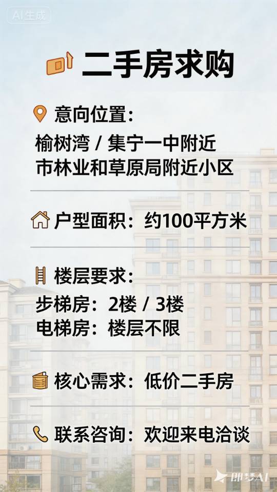 求购榆树湾集宁一中附近100平米左右二手